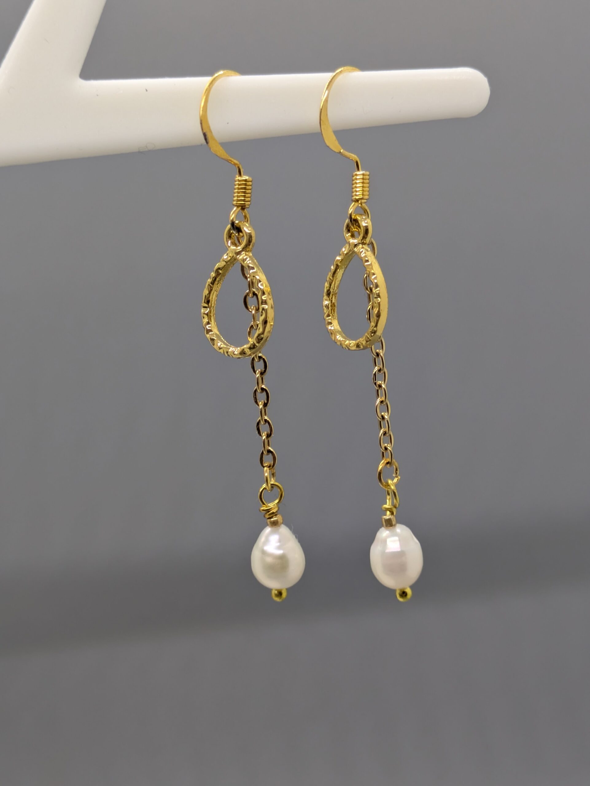 Ørestikker af guldbelagt rustfri stål. Øvrige fittings af guldbelagt messing.