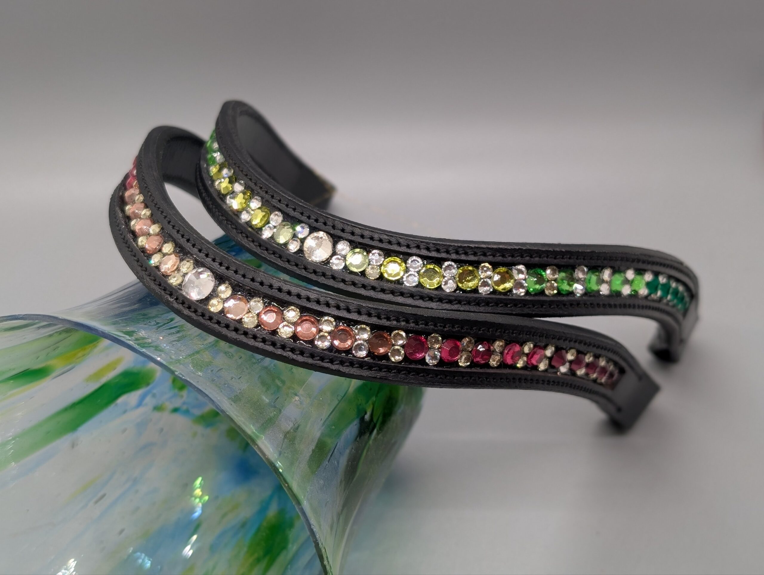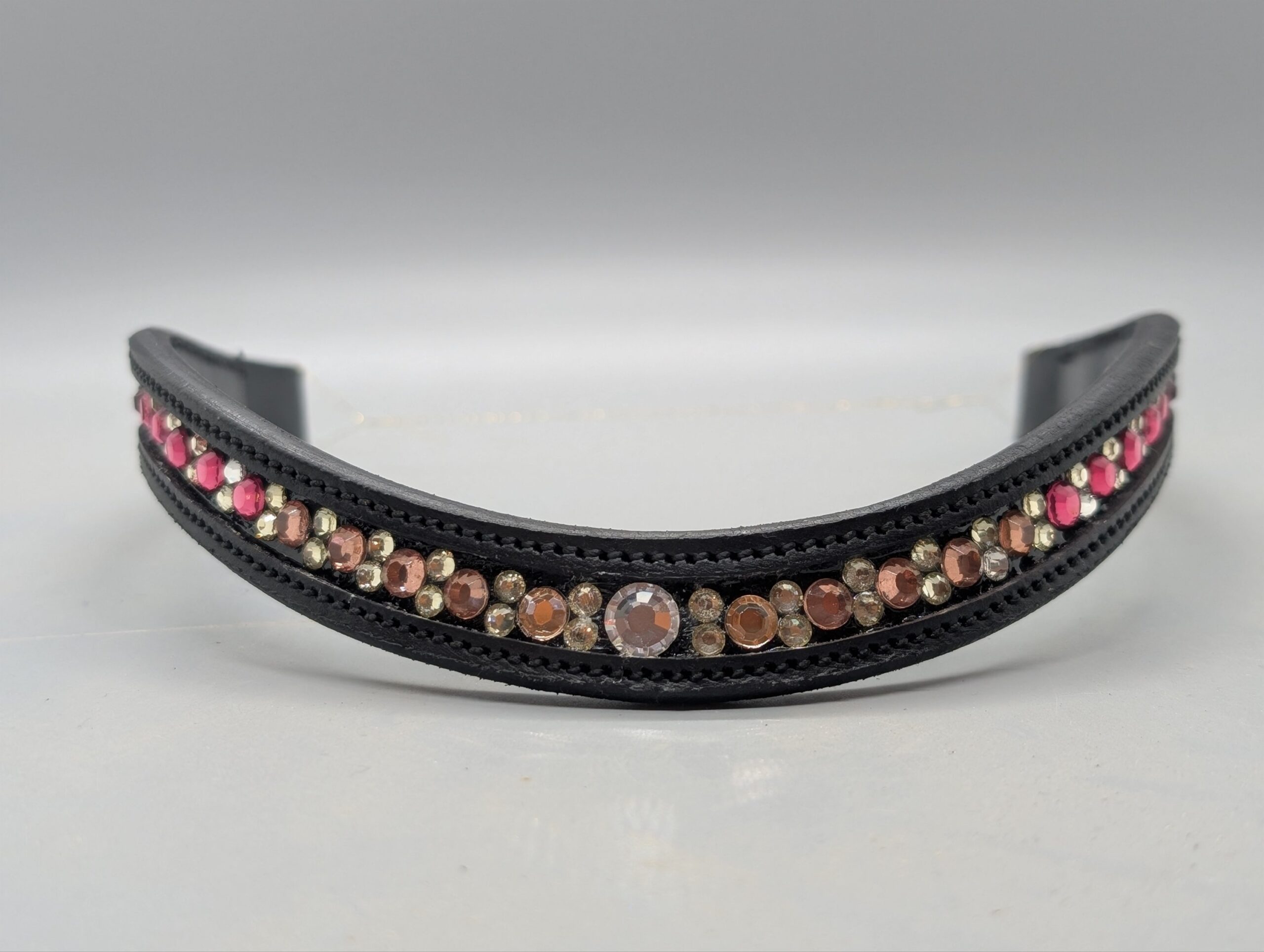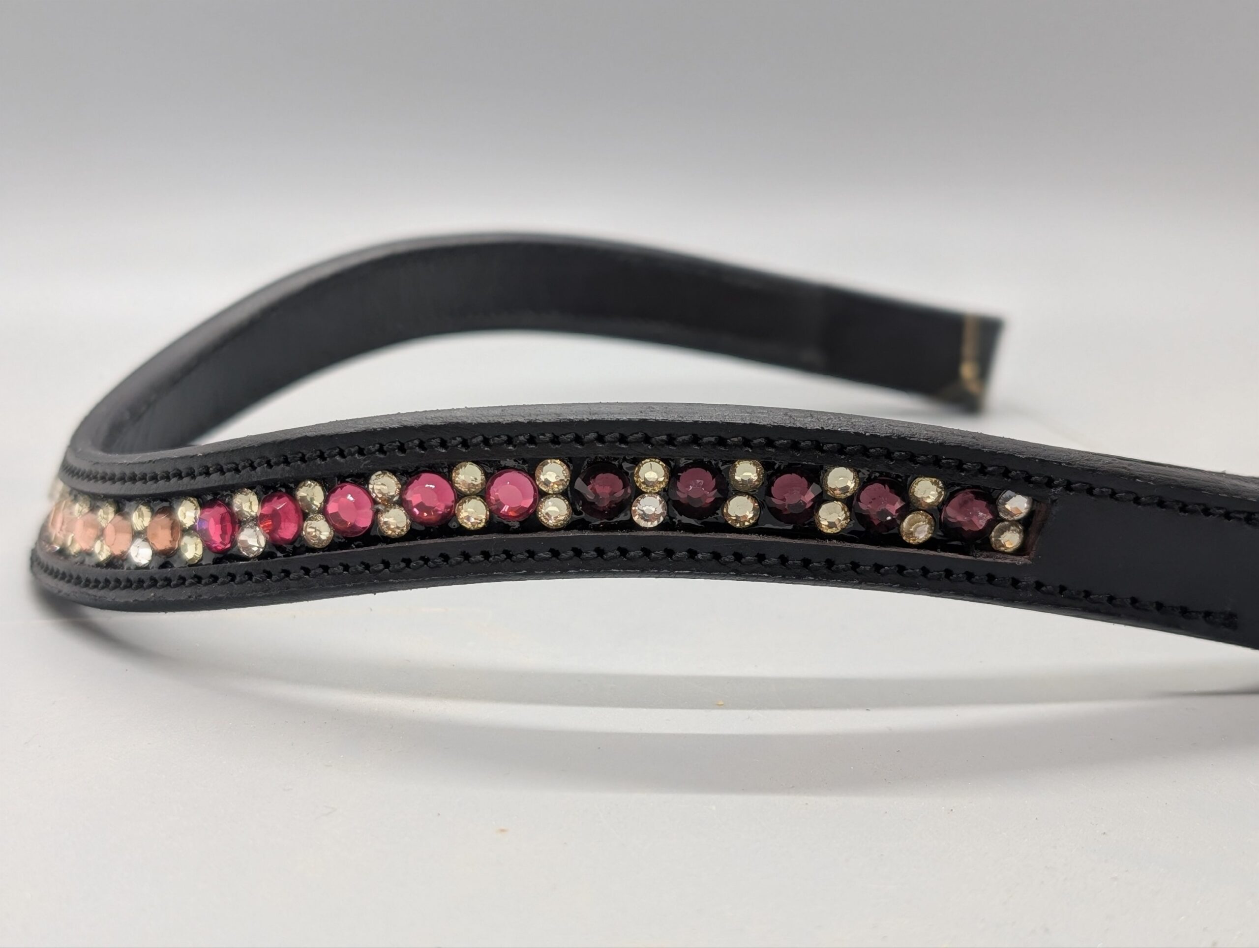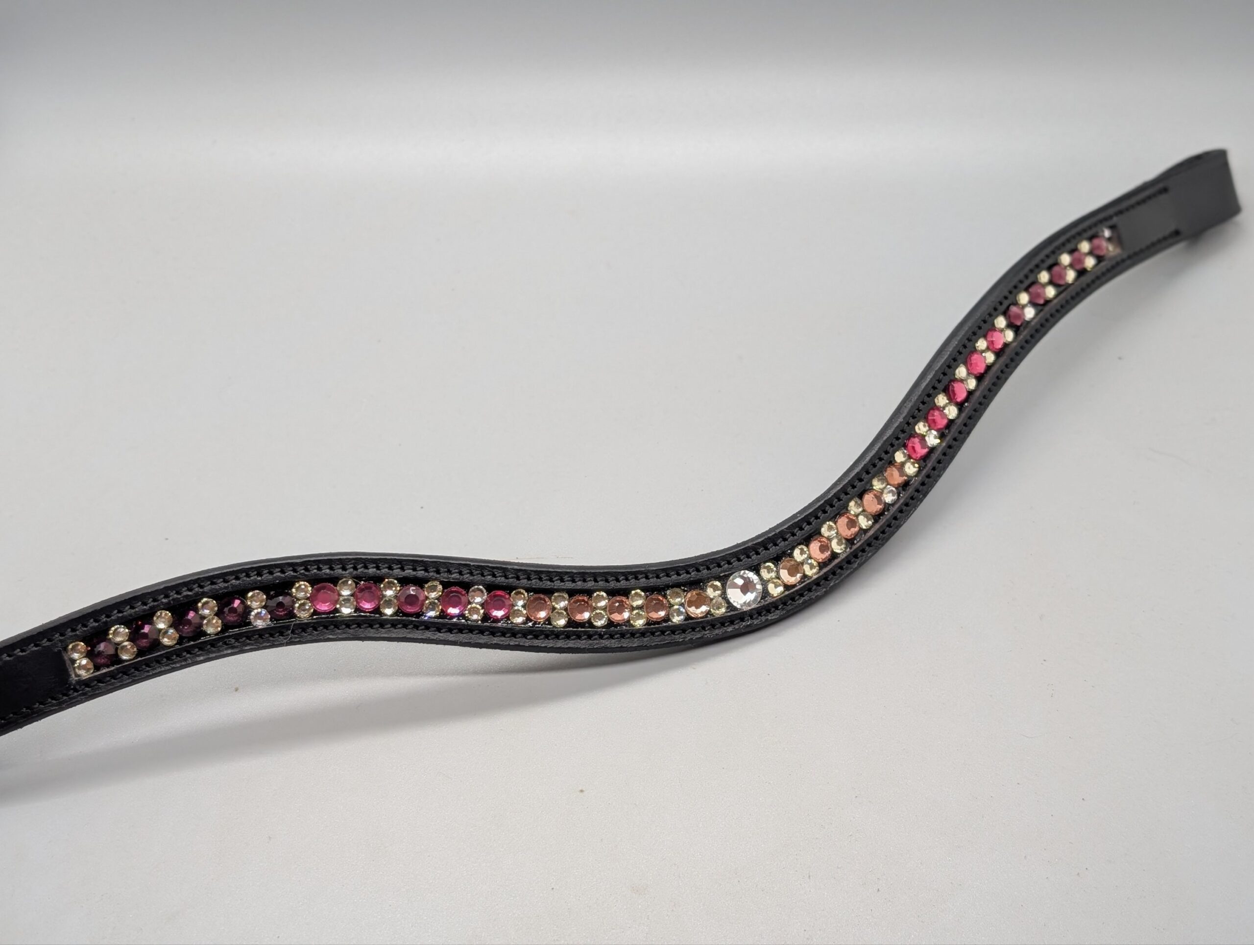 Pandebånd med lyserøde sten i forskellige nuancer.